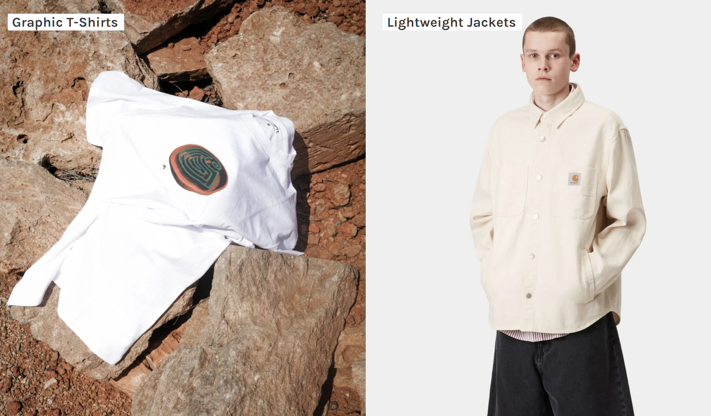 - 칼하트 W.I.P (Work In Progress) (유럽 라인): 칼하트의 아시아, 유럽 시장을 겨냥한 패션 라인입니다. 오리지널 칼하트의 감성은 유지하되, 더욱 슬림하고 트렌디한 디자인과 핏으로 재해석된 제품들이 많아요. 국내 칼하트 매장은 거의 이 W.I.P 제품들 위주로 판매하고 있습니다.